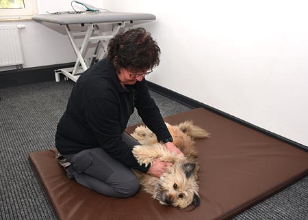 Die Behandlung beginnt mit einer ausführlichen physiotherapeutischen Untersuchung, einer Analyse des Gangbildes und der Krankengeschichte des Hundes.